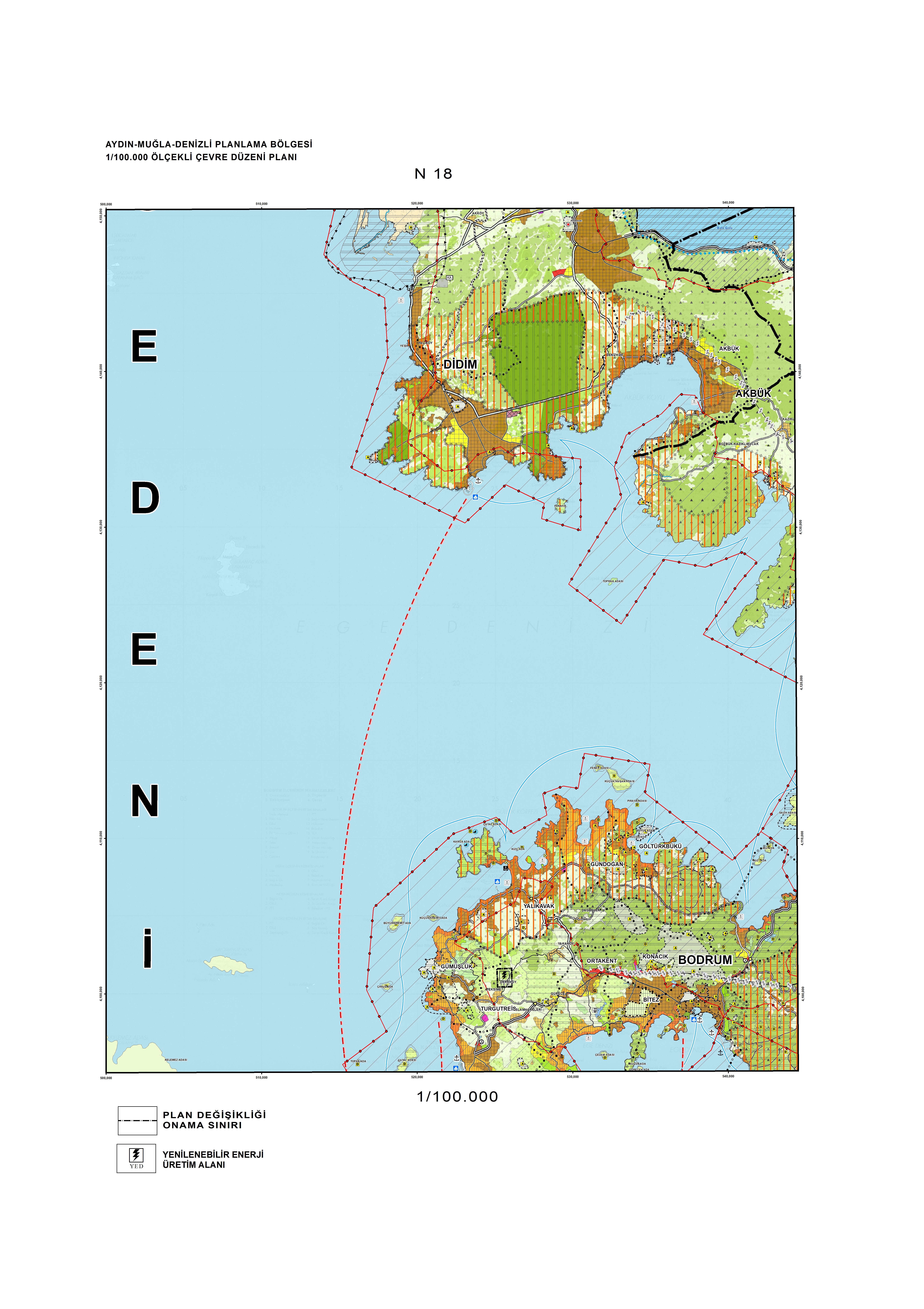 Aydın-Muğla-Denizli Planlama Bölgesi 1/100.000 Ölçekli Çevre Düzeni Planı Değişikliği (M21, M22 Plan Paftaları, Plan Hükümleri, Plan Açıklama Raporu ve Plan Değişikliği Gerekçe Raporu) 1. No’lu Cumhurbaşkanlığı Kararnamesi’nin 102. maddesi uyarınca 09.08.2018 tarihinde onaylanmıştır.