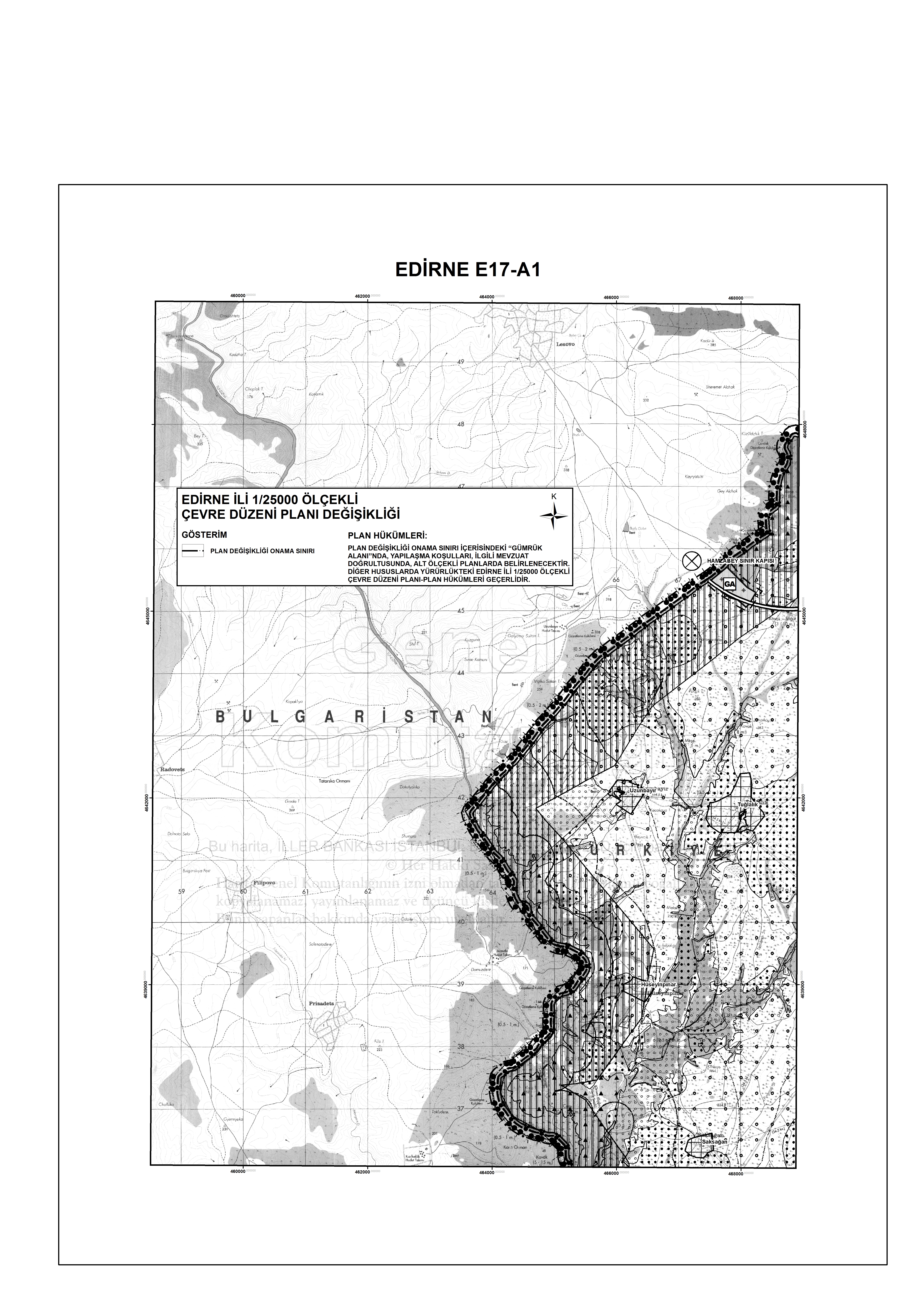 "Edirne İli 1/25.000 Ölçekli Çevre Düzeni Planı Değişikliği” (E17-d1 paftası, lejant, plan değişikliği açıklama raporu), 644 sayılı Çevre ve Şehircilik Bakanlığı’nın Teşkilat ve Görevleri Hakkında Kanun Hükmünde Kararname’nin 7. maddesi uyarınca, 17.05.2017 tarihinde Bakanlık Makamınca onaylanmıştır.