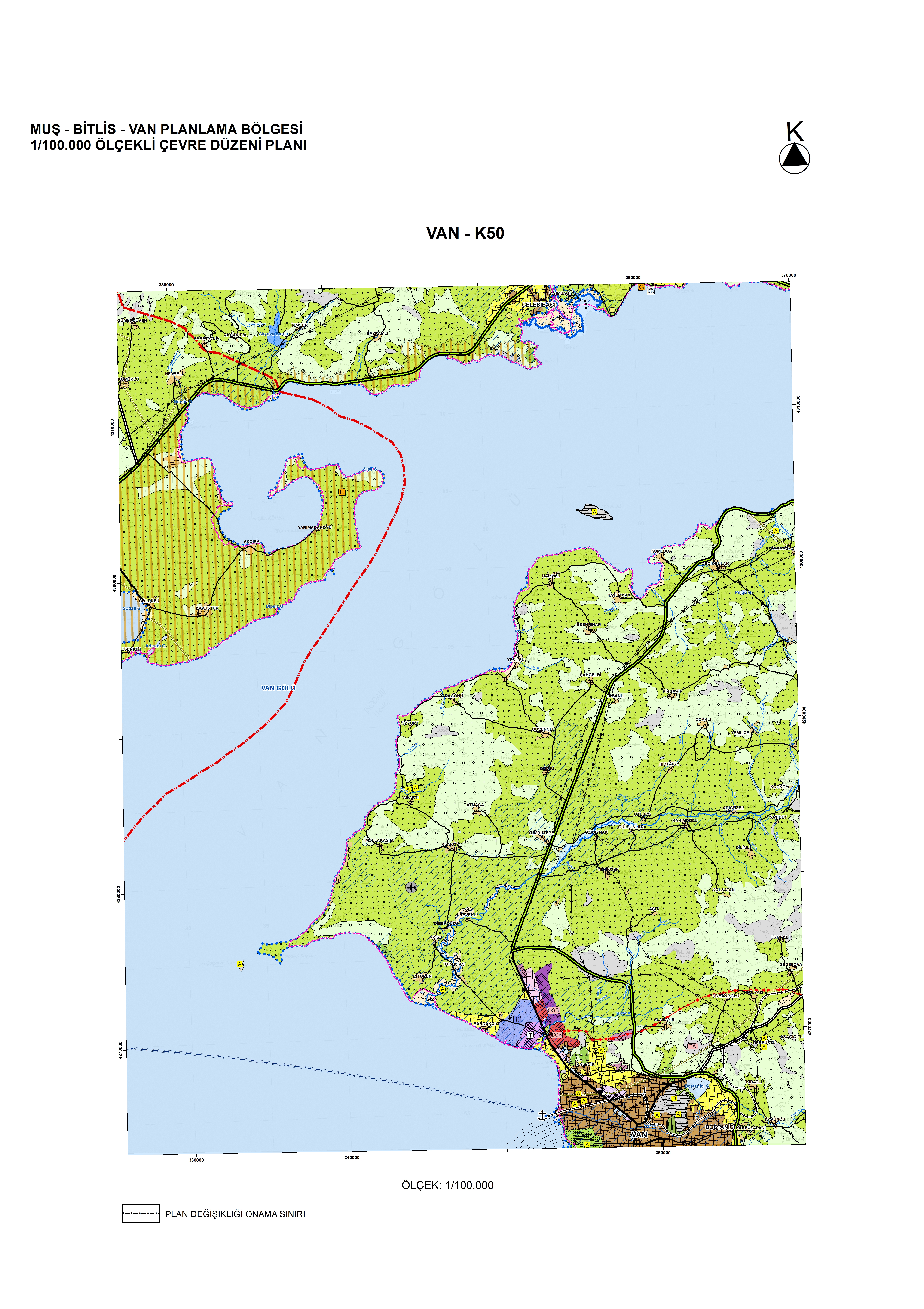 Muş-Bitlis-Van Planlama Bölgesi 1/100.000 Ölçekli Çevre Düzeni Planı Değişikliği (K-50 Plan Paftası, Plan Değişikliği Gerekçe Raporu) 644 sayılı Çevre ve Şehircilik Bakanlığı’nın Teşkilat ve Görevleri Hakkında Kanun Hükmünde Kararname’nin 7. maddesi uyarınca 03.04.2017 tarihinde onaylanmıştır.