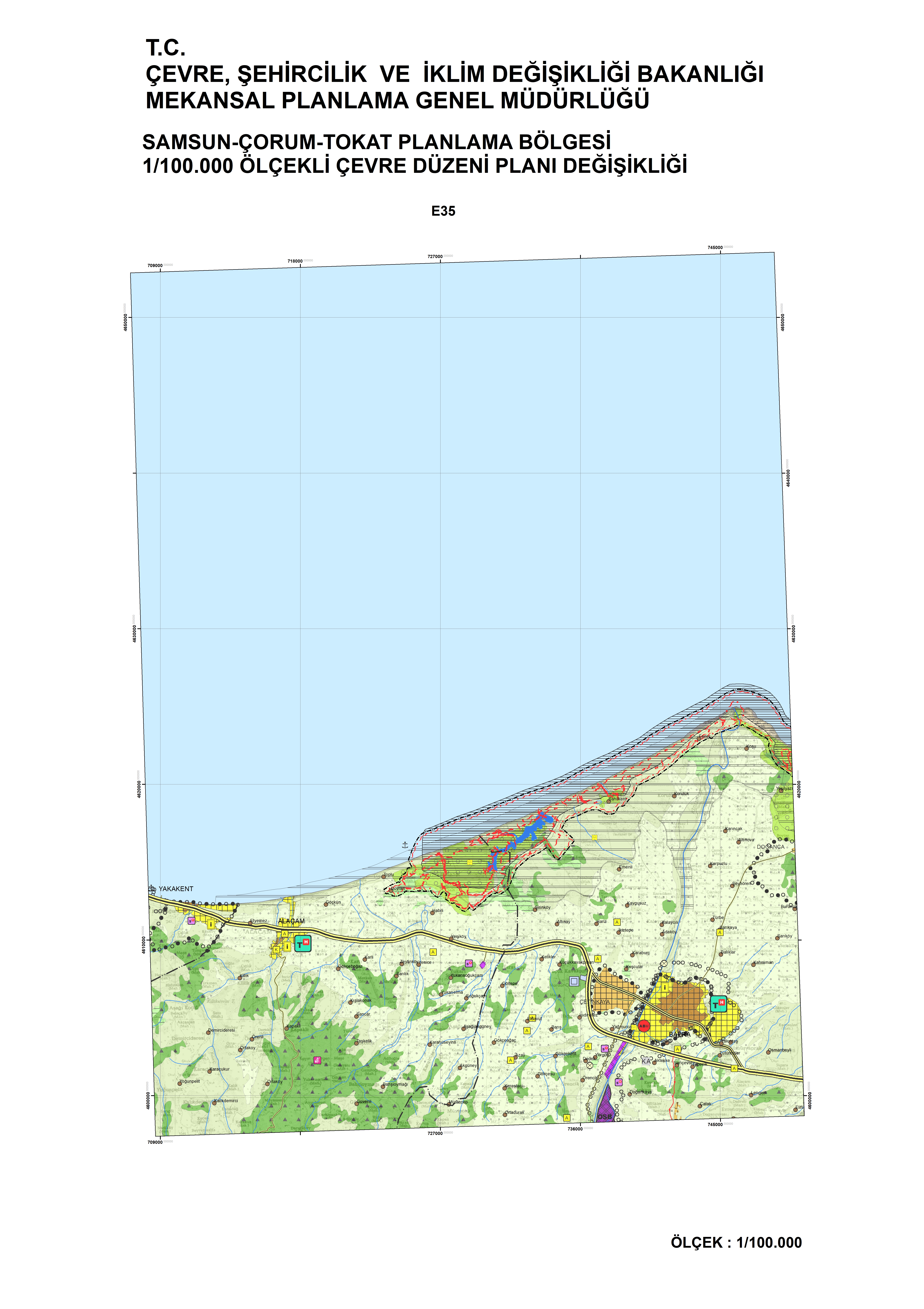Samsun Çorum Tokat Planlama Bölgesi 1/100.000 ölçekli Çevre Düzeni Planı Değişikliği (G33 ve H33 Plan Paftaları, Plan Değişikliği Gerekçe Raporu) 644 sayılı Çevre ve Şehircilik Bakanlığı'nın Teşkilat ve Görevleri Hakkında Kanun Hükmünde Kararname'nin 7. maddesi uyarınca Bakanlık Makamı'nın Olur'u ile 16.02.2017 tarihinde onaylanmıştır.