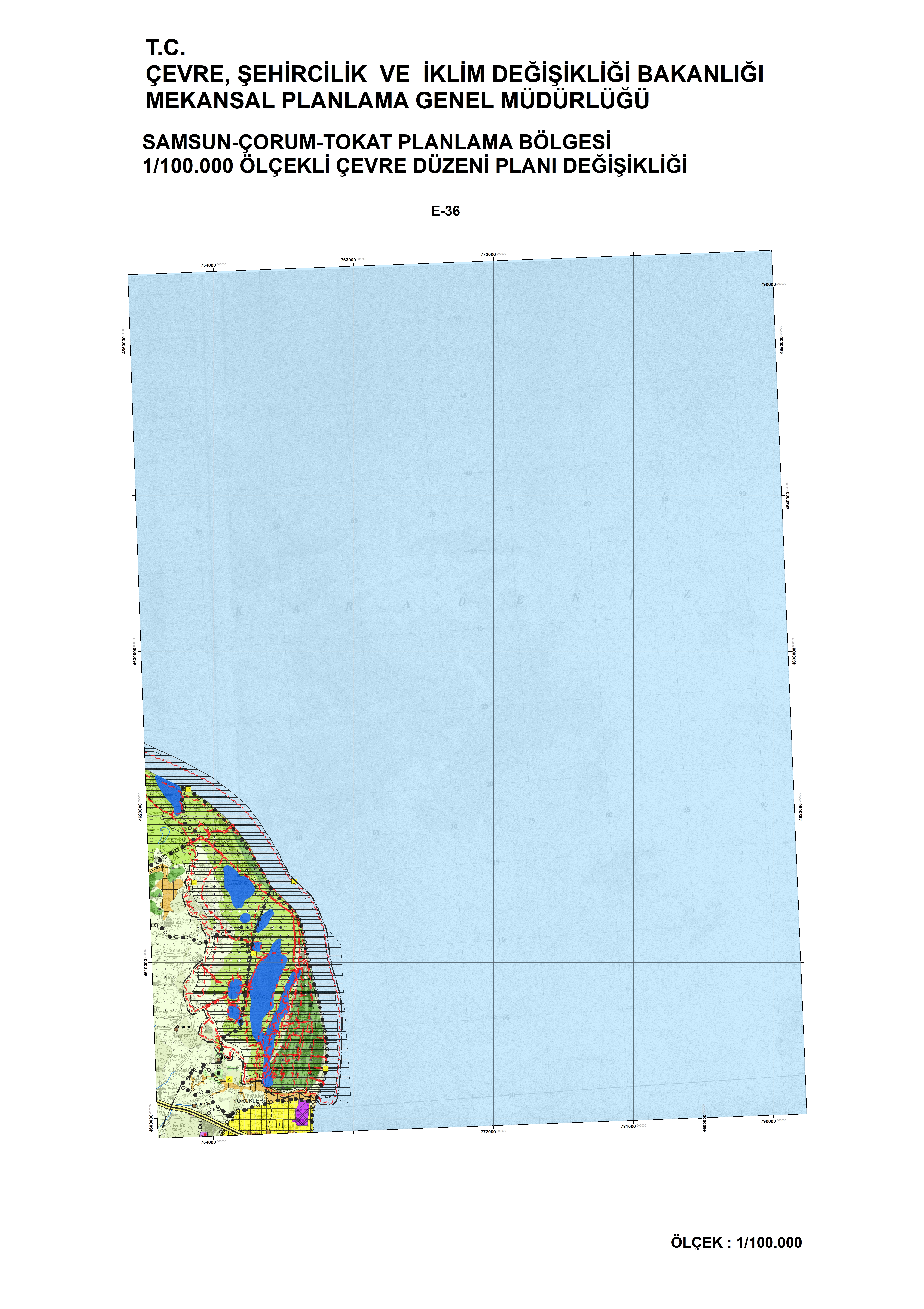 Samsun Çorum Tokat Planlama Bölgesi 1/100.000 ölçekli Çevre Düzeni Planı Değişikliği (H36 Plan Paftası, Lejant, Plan Hükümleri, Plan Değişikliği Gerekçe Raporu) 644 sayılı Çevre ve Şehircilik Bakanlığı'nın Teşkilat ve Görevleri Hakkında Kanun Hükmünde Kararname'nin 7. maddesi uyarınca Bakanlık Makamı'nın Olur'u ile 01.11.2017 tarihinde onaylanmıştır.